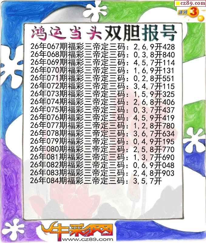 首页 > 排列3图谜 > 鸿运当头双胆报号084期体彩P3图谜
